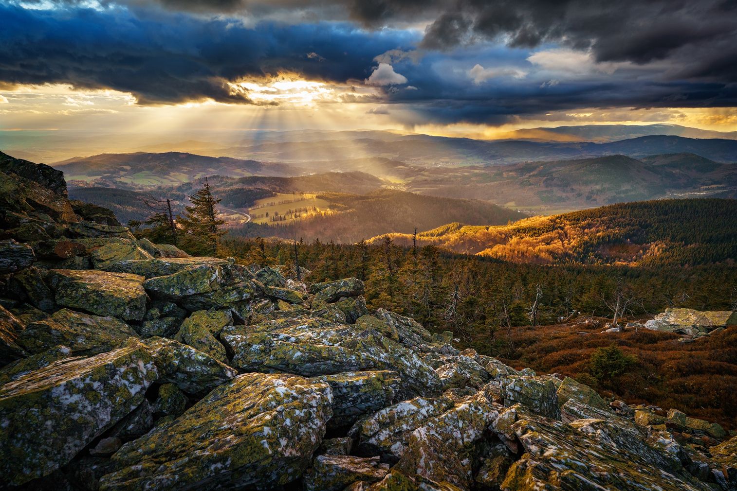 Černé kameny (cca 3,5 km) Pokračujeme po hřebeni k Černým kamenům (954 m n. m.). Tyto vyhlídkové skály jsou tvořeny tmavou rulou a nabízejí jeden z nejkrásnějších výhledů na hlavní hřeben Jeseníků a masiv Pradědu. Je to ideální místo pro krátký odpočinek a fotku.